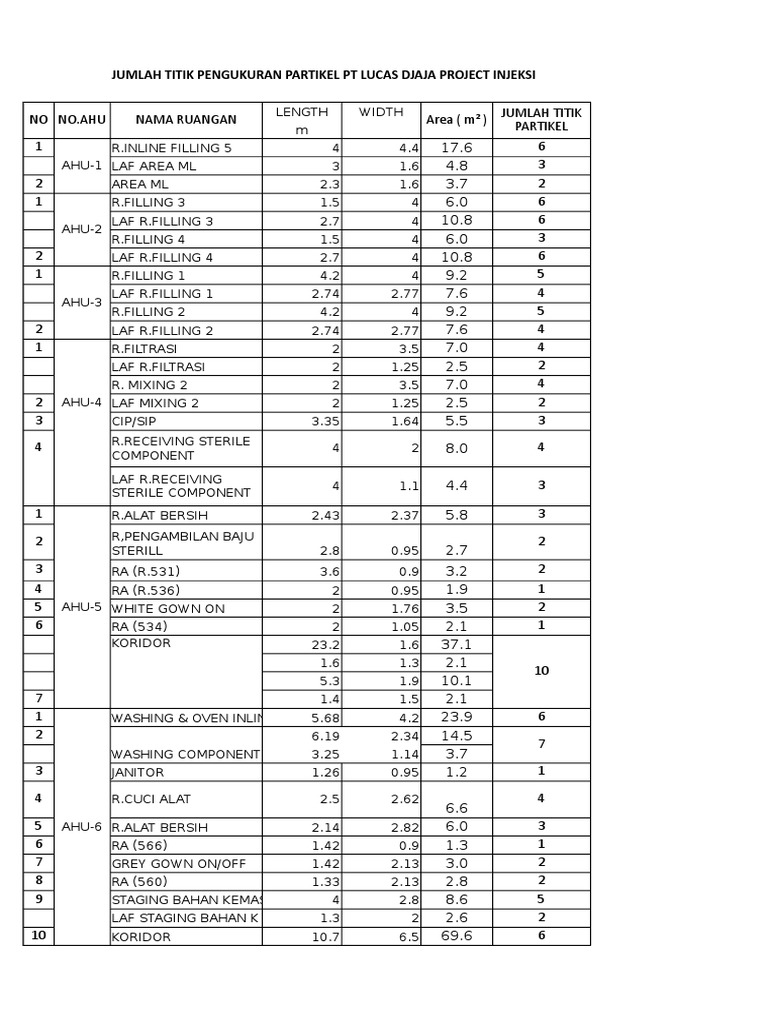 Jumlah Titik Pengukuran Partikel Pt Lucas Djaja Project Injeksi